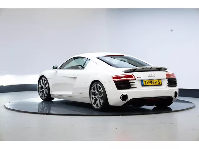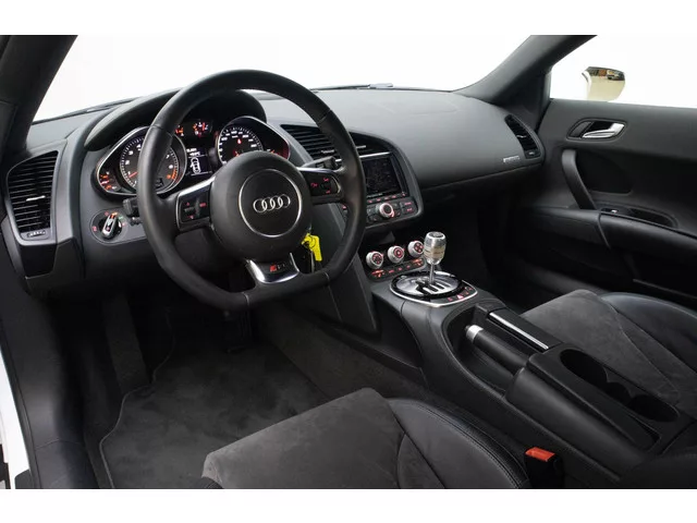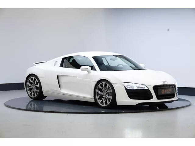 Dit is autorijden pus sang, een atmosferische V8 gekoppeld aan een handgeschakelde versnellingsbak. . PNA - Navigatiesysteem Plus. UF7 - Audi music interface. 1XW - Lederen multifunctie-sportstuurwiel. 6Q6 - Aluminium versnellingspook. N7U - Alcantara / lederen interieur. Q1D - Sportstoelen. 4A3 - Verwarmbare stoelen. PRC - Velgen 19 inch  "10-spaak Y"-design. 7K7 - Bandenspanningscontrole. 4GQ - Voorruit van warmtewerend glas. 7X4 - Parkeerhulp voor en achter. 4L6 - Zelfdimmende binnenspiegel. 6XK - Buitenspiegels, automatisch dimmend en elektrisch inklapbaar. 7AL - Alarmsysteem. 9AK - Climatronic. 6H0 - Sideblade in kleur van de carrosserie. 8EX - LED-koplampen. UG1 - Audi hill hold assist. Naast de lijst met fabrieksopties is deze R8 ook nog voorzien van een schakelbare sportuitlaat. Onderhoudsbeurten & Apk: Op 21-02-2013 bij 1 Km . Op 20-08-2014 bij 22.519 km . Op 09-02-2016 bij 48.157 Km. Op 14-07-2016 bij 51.836 Km . Op 15-15-2017 bij 56.833 Km. Op 14-02-2018 bij 60.123 Km. Op...