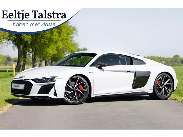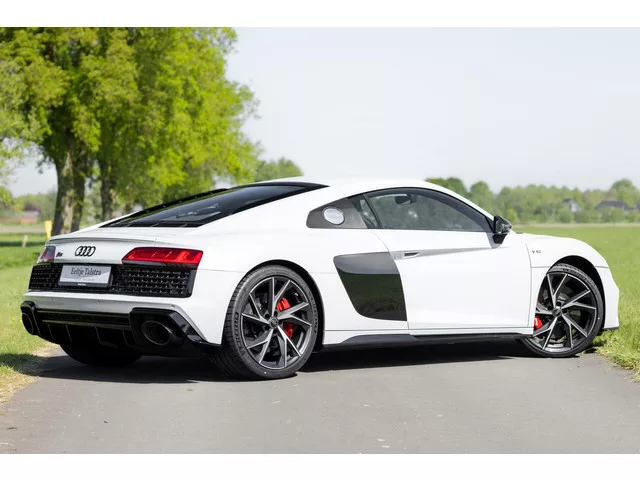 Super uitgevoerde en één van de allerlaatst geproduceerde R8'en met heerlijke V10! Audi R8 5.2 V10 performance RWD|Keramisch|B&O|Carbon|Suzukagrijs|Vol. Merk: Audi; Model: R8; Tellerstand: 5116 KM; Carrosserievorm: Coupé; Aantal deuren: 2; Brandstofsoort: Benzine; Bouwjaar: 2024; Transmissie: Automaat; Kleur: grijs; Kleurnaam: Suzukagrijs metallic; Bekleding: Leder; Kleur interieur: zwart; Motorinhoud: 5204 cc; Aantal cilinders: 10; Vermogen: 419 kW / 571pk; Ledig gewicht: 1565 kg; Aantal zitplaatsen: 2; Verbruik: 12.7 l/100 km; BTW/Marge: BTW aftrekbaar, de prijs is inclusief BTW; Aantal sleutels: 2; Onderhoudshistorie aanwezig: Dealer onderhouden. Comfort. Cruise control; Regensensor. Exterieur. Achterspoiler; Buitenspiegel(s) automatisch dimmend; Buitenspiegels elektrisch inklapbaar; Buitenspiegels elektrisch verstelbaar; Buitenspiegels in carrosseriekleur; Buitenspiegels verwarmbaar; Centrale vergrendeling met afstandsbediening; Dimlichten automatisch en regensensor; Keyless...