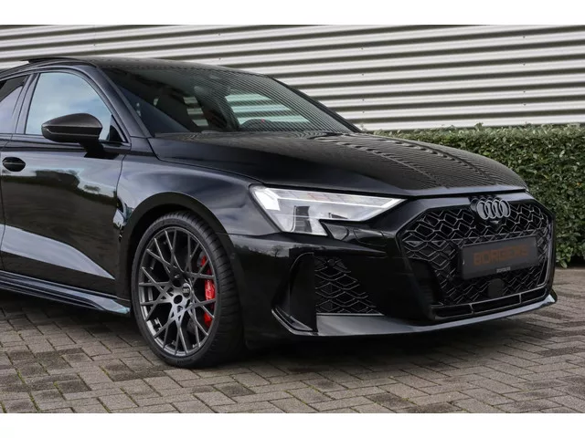 Borgers heeft weer een schitterende Audi RS3 Sportback beschikbaar! Het betreft een RS3 Sportback met 400 PK in het Mythoszwart en zeer compleet uitgevoerd met o.a.: 19 inch lichtmetalen Audi Sport velgen in 10-kruisspaak-design (zijdemat grijs); Achterklep, elektrisch met comfortopening; Ambiënte lichtpakket pro (in meerdere kleuren instelbaar); Assistentiepakket Driving en Parking pro, assistentiepakket beschermings- en waarschuwingssystemen plus (o.a.: adaptive cruise control, active lane assist, side assist met uitstapwaarschuwing, verkeertekenherkenning); Audi application store & smartphone interface (o.a.: Apple Carplay); Audi connect Navigatie & Infotainment plus (o.a.: Google Earth); Audi drive select (instelbaarheid van het rijgedrag); Audi phone box met wireless charging; Audi virtual cockpit plus met RS lay-out; Automatisch dimmende binnenspiegel (onderdeel comfortpakket plus); Automatische airconditioning met 3-zone; Bandenspanningscontrolesysteem; Buitenspiegels,...