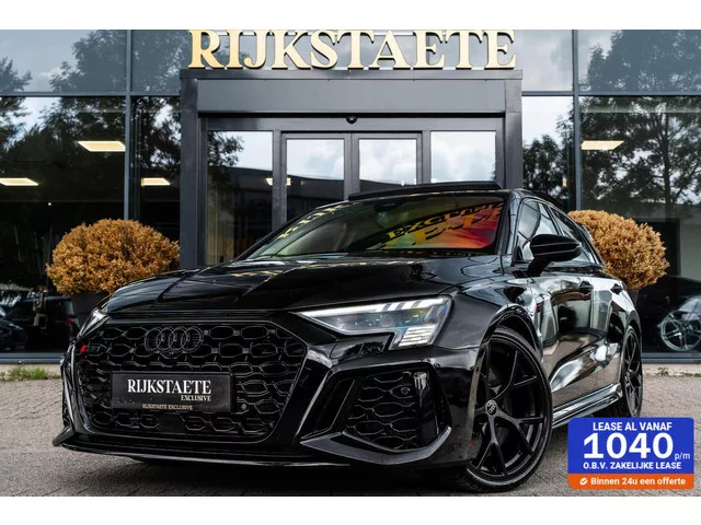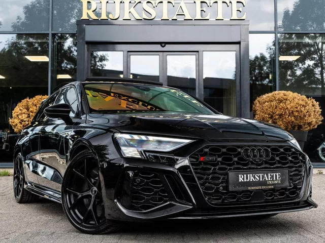 Audi RS 3 2.5 TFSI RS3 Quattro|PANO|MATRIX|KERAMISCH|B&O. Merk: Audi; Model: RS 3; APK tot: 02-09-2026; Tellerstand: 76968 KM; Carrosserievorm: Hatchback; Aantal deuren: 5; Brandstofsoort: Benzine; Bouwjaar: 2022; Transmissie: Automaat; Kleur: zwart Metallic; Bekleding: Leder; Kleur interieur: zwart; Motorinhoud: 2480 cc; Aantal cilinders: 5; Motorcode: DNW; Vermogen: 294 kW / 400pk; Ledig gewicht: 1545 kg; Aantal zitplaatsen: 5; BTW/Marge: Marge, de BTW is niet aftrekbaar; Lengte: 439 cm; Breedte: 185 cm; Aantal sleutels: 2; Onderhoudshistorie aanwezig: Dealer onderhouden; Motorrijtuigenbelasting: € 241 - 264 per kwartaal; Emissieklasse: Euro 6. Pakket: LED lichtpakket. Matrix LED koplampen. Pakket: RS dynamic pakket. Adaptief demping systeem; Keramische remschijven. Comfort. Cruise control; Regensensor. Exterieur. Achterspoiler; Adaptief demping systeem; Aluminium delen exterieur; Buitenspieg.elektr.inklap en aut. dim; Buitenspiegels elektrisch verstel- en verwarmbaar; Centrale...