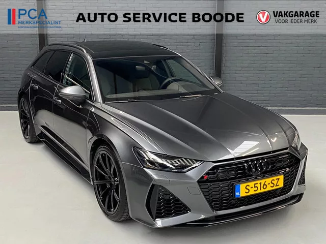Auto Service Boode biedt u deze sportieve Audi RS6 Quattro aan in de schitterende kleur Daytona Grijs. Deze auto beschikt over een 4.0 liter V8 motor met normaal 600 pk, die nu deze gechipt is naar ongeveer 700 pk. Deze auto is zeer compleet uitgevoerd met o.a. Apple Carplay / Android Auto, airconditioning separaat achter, Bang & Olufsen geluidsinstallatie, cruise control, 360 graden rondomzicht camera, 4-wiel sturing, Dynamic pakket, glazen schuif/kanteldak/panoramadak, Soft Close, elektrische achterklep, elektrisch verstelbaar stuurwiel, keramische remschijven, Keyless Entry & Go, Laser LED Koplampen, verkeersbordenherkenning, 21'' Audi Sport RS velgen in zwart, en elektrisch verstelbare RS Sportstoelen incl. memory, ventilatie en verwarming. Deze auto staat op vier nieuwe banden, heeft bij een terugroepactie de dynamo vervangen gehad (veel voorkomend). Deze auto adverteren wij Inclusief BTW voor € 119.450,- (dit is ongeveer € 108.850,- exclusief BTW en inclusief BPM). Optioneel...