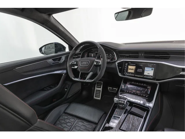 AANDRIJVING & TECHNIEK. • 4.0 V8 TFSI Mild-Hybrid 441 kW (DJPB). • quattro permanente vierwielaandrijving (1X1). • Tiptronic automatische transmissie 8-traps (G1G). • RS sportonderstel plus met DRC (2MC). • Dynamische vierwielbesturing (0N5). • Sportdifferentieel (GH2). • RS Dynamic pakket Plus – topsnelheid 305 km/h (PA3). • RS sportuitlaatsysteem (0P6). • Keramisch remsysteem vóór en achter, remzadels blauw (PC8). COMFORT & INTERIEUR. • RS sportstoelen vóór, leder Valcona geperforeerd met RS-logo’s (Q4Q / N5M). • Elektrisch verstelbare voorstoelen met geheugen (3L4). • Stoelverwarming vóór en achter (4A4). • Stoelventilatie vóór (4D3). • Stuurwiel RS sport/leder, afgevlakt, verwarmbaar (2PZ). • Comfort-airco automatisch 4-zones (9AQ). • Panoramadak, voor elektrisch / achter vast (3FU). • Zonneschermen achter (3Y4). • Ionisator & geurverspreider (Air Quality System) (2V9). • Dakbekleding Audi exclusive Dinamica zwart (6NA). • Interieurinleg Carbon Keper (5MK). • Akoestisch glas...