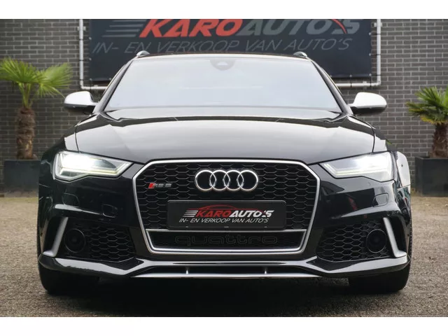 In topstaat verkerende Audi RS6 Avant 4.0 TFSI V8T C7 automaat 560PK S-tronic in de kleur Phantom zwart parelmoer voorzien van alle denkbare opties zoals; RS interieur, RS exterieur, RS kuipstoelen, luxe half lederen/alcantara sportbekleding, elektrisch verstelbare voorstoelen met memory, Headup display, Bose audiosysteem, achteruitrijcamera, led sfeerverlichting, matrix led koplampen, led achterlichten, led dynamische knipperlichten, grootbeeld navigatiesysteem, spraakbediening, keyless go/entry, Audi drive select met originele uitlaat kleppensysteem, automatische grootlicht assistent, adaptieve cruise control met stop/go, lane assist, gevarenherkenning, rem assistent, bordherkenning, multimediasysteem met usb/bluetooth/DAB+ radio/cd, parkeersensoren voor en achter, start/stopsysteem, privacy glas, privacy shades achter, climate control, lendensteun, elektrische ramen voor en achter, elektrisch bedienbare achterklep, elektrisch inklapbare/bedienbare/verwarmbare spiegels,...
