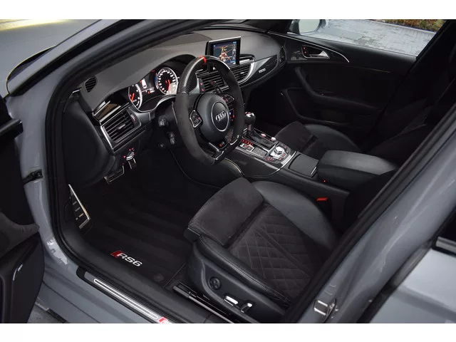 Audi RS6 Avant 4.0 V8 TFSI Quattro 605pk Performance. Uitgevoerd met o.a.: Akrapovič uitlaatsysteem (origineel af fabriek), Dynamic Plus pakket, Keramische remschijven, Zwart glanzend optiekpakket incl. 'Quattro' opschrift in inlaattrechter, Geluidsisolerend glas, Matrix LED koplampen, Lichtmetalen velgen 21", Sportonderstel met variabele demping, Lederen sportstuur met afgevlakte onderzijde, Half lederen / alcantara interieur, Elektrisch verstelbare sportstoelen met geheugenfunctie in bestuurdersstoel, Stoelpanelen met leer bekleed (Audi Exclusive), Alcantara hemelbekleding, Stoelverwarming voor + achter, Keyless entry, Elektrisch bedienbare achterklep, MMI High navigatiesysteem, BOSE soundsysteem, Digitale radio ontvangst, Parkeersensoren voor en achter, Achteruitrijcamera, Adaptieve Climate control, Cruise control, Lane Assist, Side Assist. 8 versn., Automaat; Modeljaar: 2015; 4WD; 445 kW; 750 Nm; 8 cilinders; 3.993cc; Gewicht: 1.925kg; Laadvermogen: 655kg; GVW: 2.580kg; LxBxH:...