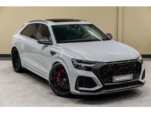 Full option Audi RSQ8 ABT 740 PK. In een speciale Audi exclusive kleur: Suzuka Grijs. Recent onderhoud gehad bij 28.000 KM (dealeronderhouden) Onderstaand treft u de ABT upgrades aan inclusief de Audi fabrieksopties. ABT upgrades: - ABT Power R upgrade van 600 PK naar 740 PK (incl. verlengde Audi fabrieksgarantie (5-jaar). - ABT HR23” inch Gloss Black velgen. - ABT Uitlaatsysteem incl. 4 sporteindtips. - ABT Verlaging (verlaging op de luchtvering). - ABT Carbon Fender Inserts. - ABT Startknop. - ABT logoset. Audi fabrieksopties: - Kleur: Audi Exclusive - Suzuka Grijs. - Dynamic Plus Pakket (o.a. Keramische remmen, 4W-Besturing, Topsnelheid 305 km/u). - Keramische remmen incl. rode remklauwen. - Carbon Optiek pakket (o.a. Grill carbon, Splittervoorzijde carbon, Sierlijst achter carbon, Diffuser carbon). - Spiegelkappen Carbon. - Panoramadak, elektrisch bedienbaar. - Bang & Olufsen Advanced Sound System met 3D-sound. - Vierwielbesturing (meesturende achterasbesturing). - Head-Up...