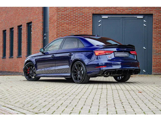 We hebben weer iets moois binnen gekregen, een Audi S3 Limousine in het werkelijk schitterende Navarrablauw metallic. Wat een kleur! Die diepe blauwe glans laat de S3 er echt fantastisch uitzien. Het gaat om een 2018-model met 87.500 km op de teller, helemaal compleet uitgerust voor de liefhebber. Denk aan een panoramadak, RS-sportstoelen en een adaptief onderstel voor die perfecte rijbeleving. Verder natuurlijk voorzien van een achteruitrijcamera, Matrix LED-koplampen, inklapbare spiegels, keyless entry en een Bang & Olufsen-audiosysteem. De auto is keurig dealeronderhouden en verkeert in uitstekende staat. We hebben er bovendien een set 19 inch velgen onder gezet, die maken de S3 helemaal af! Deze zijn beschikbaar tegen een scherpe meerprijs. 4WD; 228 kW; 4 cilinders; 1.984cc; Gewicht: 1.445kg; Laadvermogen: 575kg; GVW: 2.020kg; 0-100 km/h: 4,6s; Topsnelheid: 250km/u; Interieurkleur: Zwart; 5 zitplaatsen; 6,5 l/100km; 8,3 l/100km; 5,5 l/100km; 151 g/km CO₂; Energielabel E; Euro 6;...