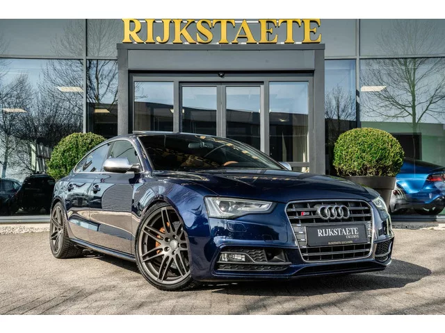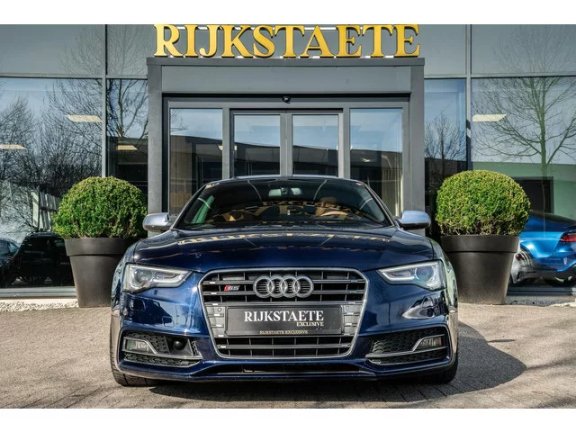Audi S5 3.0 TFSI Quattro|PANO|333 PK|CAMERA|MEMORY|20''|ACC. Merk: Audi; Model: S5; APK tot: 10-10-2026; Tellerstand: 123074 KM; Carrosserievorm: Hatchback; Aantal deuren: 5; Brandstofsoort: Benzine; Bouwjaar: 2012; Transmissie: Automaat; Kleur: blauw Metallic; Bekleding: Stof; Kleur interieur: zwart; Motorinhoud: 2995 cc; Aantal cilinders: 6; Motorcode: CGW; Vermogen: 245 kW / 334pk; Ledig gewicht: 1720 kg; Max. trekgewicht: 1900 kg; Aantal zitplaatsen: 4; Verbruik: 8.1 l/100 km; BTW/Marge: Marge, de BTW is niet aftrekbaar; Breedte: 185 cm; Aantal sleutels: 2; Onderhoudshistorie aanwezig: Ja; Motorrijtuigenbelasting: € 293 - 320 per kwartaal; Emissieklasse: Euro 5. Pakket: Audi Assist. Achteruitrijcamera; Cruise control adaptief; Dodehoek detectie; Parkeersensor voor en achter; Rijstrooksensor. Pakket: Audi Comfort. Buitenspiegels elektrisch inklapbaar; Keyless entry; Voorstoel(en) elektrisch verstelbaar. Pakket: Audi Connect. Autotelefoon voorbereiding; Navigatiesysteem full map +...
