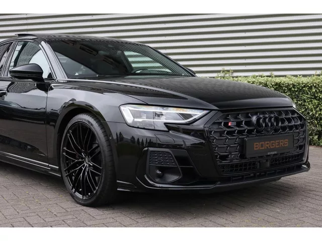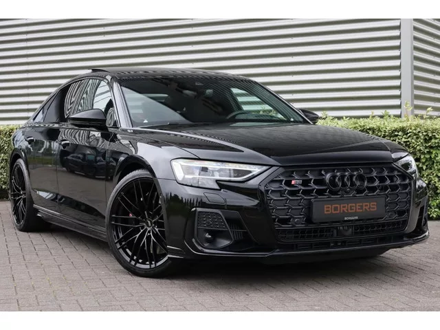 Borgers heeft weer een prachtige Audi S8 met ABT velgen beschikbaar! Het betreft een S8 4.0 TFSI met 571 PK in het Mythoszwart en zeer compleet uitgevoerd met o.a.: 21 inch lichtmetalen ABT velgen in HR-design glossy black; 230-volt aansluiting achterin; Airbagkap bekleed in leder; Ambiente-lichtpakket plus (in meerdere kleuren instelbaar); Assistentiepakket City (o.a.: side assist en uitstapwaarschuwing); Assistentiepakket Parking met parkeer assistent plus (o.a.: topview 360 graden camera’s); Assistentiepakket Tour (o.a.: adaptive cruise control, lane assist, verkeertekenherkenning); Audi phone box met Wireless Charging; Audi ringen en type-aanduiding in hoogglans zwart; Audi smartphone interface (o.a. Apple Carplay); Audi Virtual Cockpit Plus; Bandenspanningscontrolesysteem; Bang & Olufsen Advanced soundsysteem met 3D-klank; Beeldschermen achterin (2 schermen bevestigd aan rugleuning voorstoelen); Buitenspiegels, elektrisch inklapbaar en automatisch dimmend met memory...