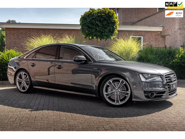 In nieuwstaat verkerende Audi S8 4.0 TFSI Quattro. Vorige eigenaar heeft de auto laten aanpassen voor het brandstof verbruik terug te brengen, de auto haalt nu met gemak 1 : 12. het vermogen is gestegen naar een abnormale ruim 670pk. Auto is van binnen en buiten in smetteloze staat en afkomstig van een echte liefhebber! Altijd goed onderhouden, Onderhoud gehad bij 151.053 KM. Volledige onderhoudshistorie en 2 sleutels aanwezig! Uitgerust met alle denkbare opties zoals o.a; 21'' LM-Velgen, Keramische Remmen, PDC voor en achter, Full LED koplampen, LED achterlichten, Adaptive Cruise-Control, Climate-Control, Navigatiesysteem, Stoelverwarming voor en achter, Stoelventilatie voor, Carbon afwerking Interieur, Camera voor en achter, Bluetooth Telefoon-Media, Bang en Olufsen Audiosysteem, Alcantara Hemel, Glazen schuif-kanteldak, Multifunctioneel Lederen stuurwiel met Flippers, Elektrisch verstelbare voorstoelen met geheugen, Bestuurdersstoel en passagiersstoel met Massage functie,...