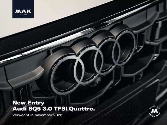 Deze auto wordt verwacht, informeer naar beschikbaarheid! Dit betreft een zeer luxe en krachtig uitgevoerde Audi SQ5 3.0 TFSI Quattro (367 pk). Kleur exterieur: Daytonagrijs pareleffect (6Y6Y) en interieur: Leder zwart (N3M). Deze auto heeft slechts 2.154 km gereden en verkeert in absolute nieuwstaat. Nieuwprijs circa € 150.000,-. Voorzien van vele opties zoals: Belangrijkste Opties: PYH: MMI experience pro. 8G4: Matrix LED-koplampen. JH1: Bijrijdersdisplay. KS1: Head-up display. 2MB: Adaptive air suspension. 3FU: Glazen panoramadak. VC2: Garagedeuropener. 1D4: Mechanisch wegklapbare trekhaak. Connectiviteit en Infotainment. Met het MMI navigatie plus (7UG) in combinatie met MMI experience pro (PYH) geniet u van een uiterst gebruiksvriendelijk navigatie- en infotainmentsysteem met spraakbediening, 3D-kaarten en een groot aanraakscherm. Via Audi connect (IT3, IU6, IW3, JE3) beschikt u over online functies zoals eCall & bCall, real-time verkeersinformatie en een WiFi-hotspot. De Audi...