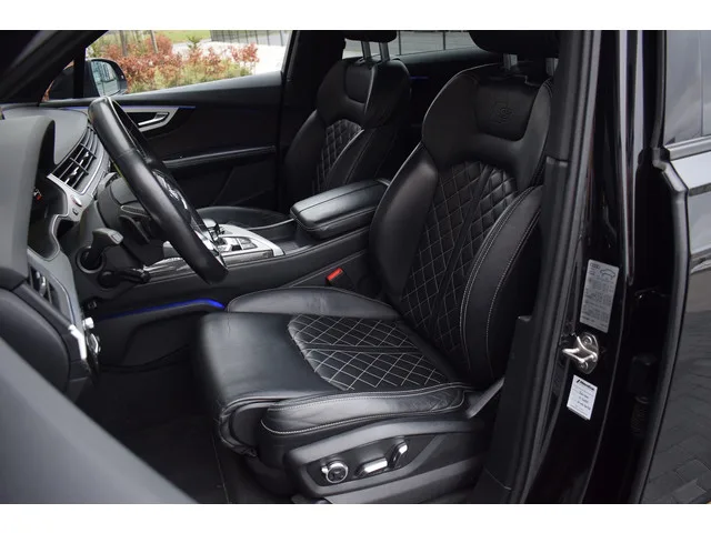 Audi SQ7 4.0 V8 TDI Quattro 7-Persoons. Zeer compleet uitgevoerd met o.a.: Keramische remmen, Luchtvering, Rolstabi / 4-wielbesturing, Lederen interieur met RS stoelen, Voorstoelen elektrisch verstelbaar met geheugenfunctie in beide stoelen, Stoelverwarming voor + achter, Climate control met 4-zones bediening, Adaptieve Cruise Control, Lane Assist, Elektrisch bedienbare stuurkolom, Lederen multifunctioneel sportstuur, Carbon dasboardinleg, Centrale vergrendeling 'Keyless entry', Elektrisch bedienbare achterklep, MMI High Navigatiesysteem, Virtual Cockpit, Matrix LED koplampen, LED achterlichten met dynamische knipperlichten, Interieurvoorverwarmingsinstallatie, Nachtzichtassistent, Bang&Olufsen soundsysteem, Lichtmetalen velgen 22", 360 graden camera's, Head-Up display, Trekhaak wegklapbaar. Keurige en goed onderhouden SQ7 met volledige onderhoudshistorie aanwezig. 8 versn., Automaat; Modeljaar: 2016; 4WD; 321 kW; 900 Nm; 8 cilinders; 3.956cc; Gewicht: 2.305kg; Laadvermogen: 895kg;...