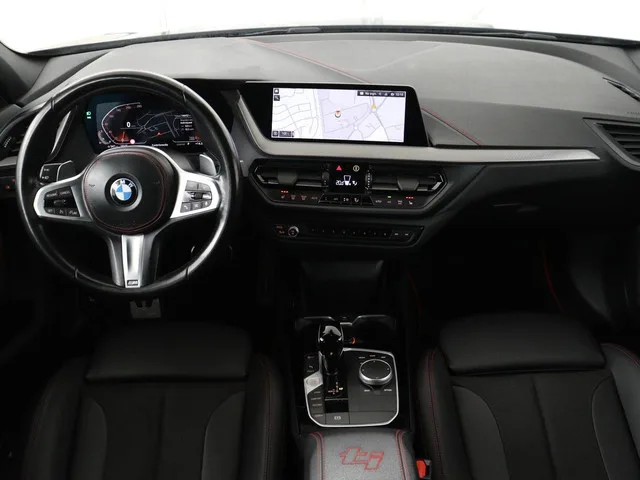 Deze auto wil maar een ding: rijden. Dat ziet u aan zijn sportieve uiterlijk. Deze BMW 1-serie straalt kwaliteit en klasse uit en belooft u puur rijplezier. De aandrijving van deze BMW wordt verzorgd door een viercilinder benzinemotor en een automatische transmissie. Stijl en comfort krijg je erbij in de vorm van een fraai lederen interieur. 's Winters komen de verwarmbare voorstoelen heerlijk van pas. In deze sportstoelen voel je je één met je auto. Licht, luxe en gemak komen samen in de vorm van het elektrische bediende glazen panoramadak. Natuurlijk behoren 18 inch lichtmetalen velgen, LED koplampen, sportonderstel, in delen neerklapbare achterbank, verwarmde ruitensproeiers en snelheidsafhankelijke stuurbekrachtiging ook tot de uitrusting van deze complete auto. Rij- en route-info wordt perfect in beeld gebracht door het digitale dashboard. Ingericht op Connected Services, voor een nog veiligere en comfortabelere rit. Kies de muziek waarvan u houdt, dankzij de DAB-radio klinkt...