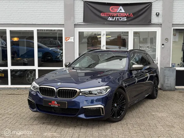 In top conditie verkerende 540i. BMW 5-serie Touring 540i xDrive High Executive Edition. Kenteken: H-553-GG; Merk: BMW; Model: 5-serie Touring; APK tot: 30-05-2027; Tellerstand: 178904 KM; Carrosserievorm: Station; Aantal deuren: 5; Brandstofsoort: Benzine; Bouwjaar: 2019; Transmissie: Automaat; Kleur: blauw Metallic; Bekleding: Leder; Kleur interieur: wit; Motorinhoud: 2998 cc; Aantal cilinders: 6; Motorcode: B58B30A; Vermogen: 250 kW / 341pk; Ledig gewicht: 1740 kg; Max. trekgewicht: 2000 kg; Aantal zitplaatsen: 5; Verbruik: 7.3 l/100 km; BTW/Marge: Marge, de BTW is niet aftrekbaar; Lengte: 494 cm; Breedte: 187 cm; Hoogte: 1498 cm; Aantal sleutels: 2; Onderhoudshistorie aanwezig: Dealer onderhouden; Motorrijtuigenbelasting: € 307 - 335 per kwartaal; Emissieklasse: Euro 6. Pakket: Audio Media Pack. Audio installatie; DAB; Draadloze telefoonlader; WiFi. Pakket: Driving Assistant. Achteruitrij assistent; Dodehoek detectie; Rijstrooksensor; Verkeersbord detectie. Pakket: M Sportpakket...