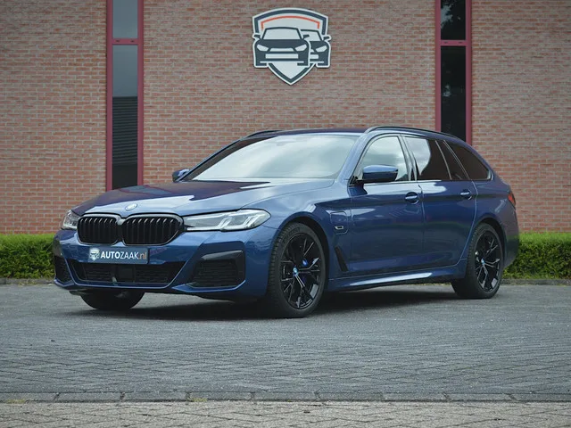 Rijklaarprijs incl. BTW.  BMW 530e Touring (215 kW / 292 pk / 420 Nm) M Sport in Phytonicblau metallic. BMW dealeronderhouden, recent BMW onderhoud uitgevoerd. Interessante fiscale waarde voor de zakelijke rijder. BMW configuratie (uitrusting)    . C1M  -  Phytonicblau metallic lak. 1E9  -  19 inch M lichtmetalen wielen Y-spaak (styling 845 M) in Jet Black. 337  -  M Sport pakket . 481  -  Sportstoelen. 4KH  -  Interieurlijsten Aluminium Rhombicle Rauchgrau, accentlijsten Perlglanz chroom. 4UR  -  Ambiance verlichting. 710  -  M Sportstuurwiel met leder bekleed. 715  -  M Aerodynamicapakket. 2NH  -  M Sportremsysteem. 760  -  M Hoogglans Shadow Line. 775  -  BMW Individual hemelbekleding in Anthrazit uitgevoerd. ZS7  -  Safety Pack.     Lane Change warning.     Lane Departure warning.     Crossing-traffic Warning achter.     Botswaarschuwing achter.     Speed Limit Info. 5DM  -  Parking Pack.     Parking Assistant.     Achteruitrijcamera.     Parking Assistant. 2TB  -  Steptronic...