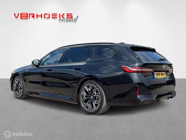 BMW 5 serie 530e Touring M-Sport / Leer /Pano /Head-up /TH. Kenteken: HHP-04-S; Merk: BMW; Model: 5 serie; APK tot: 17-03-2029; Tellerstand: 50 KM; Carrosserievorm: Station; Aantal deuren: 5; Brandstofsoort: Hybride (Elektrisch/Benzine); Bouwjaar: 2025; Transmissie: Automaat; Kleur: zwart Metallic; Kleurnaam: Saphirschwarz metallic; Bekleding: Leder; Kleur interieur: zwart; Interieurnaam: Veganza Schwarz; Motorinhoud: 1998 cc; Aantal cilinders: 4; Vermogen: 220 kW / 300pk; Ledig gewicht: 2040 kg; Max. trekgewicht: 1800 kg; Aantal zitplaatsen: 5; BTW/Marge: BTW aftrekbaar, de prijs is inclusief BTW; Lengte: 506 cm; Breedte: 190 cm; Aantal sleutels: 2; Onderhoudshistorie aanwezig: Dealer onderhouden; Motorrijtuigenbelasting: € 184 - 202 per kwartaal; Aantal maanden fabrieksgarantie: 36; Emissieklasse: Euro 6. Comfort. Cruise control; Regensensor. Exterieur. 20" LM velgen; Achterruitwisser; Achteruitrijcamera; Buitenspiegel rechts; Buitenspiegels elektrisch verstelbaar; Buitenspiegels...