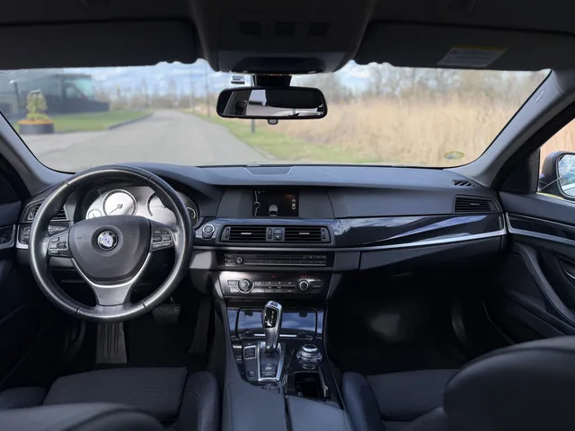 Zeer nette originele BMW 520D Sedan. Originele NL Auto met NAP. Goed onderhouden met onderhoudsboekjes. Voor meer informatie of een proefrit belt u gerust op: 0625048182. 8 versn., Automaat; Modeljaar: 2013; Achterwielaandrijving; 135 kW; 380 Nm; 4 cilinders; 1.995cc; Gewicht: 1.600kg; Laadvermogen: 635kg; GVW: 2.235kg; Max. trekgewicht: 2.000kg; LxBxH: 490x186x146cm; Wielbasis: 297cm; 70l tank; 0-100 km/h: 8,1s; Topsnelheid: 225km/u; Interieur: zwart, Leder/stof; 5 zitplaatsen; 4,7 l/100km; 5,7 l/100km; 4,1 l/100km; 123 g/km CO₂; Energielabel A; Euro 5; Onderhoudsboekjes aanwezig; Aantal eigenaren: 4; APK: tot jan. 2027; 2 sleutels (2 handzenders); Wegenbelasting: € 549-€ 575p/kwrt; € 438 p/m (informeer naar de mogelijkheden en voorwaarden); 3-SPG-43