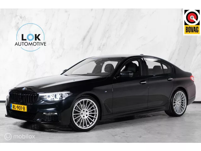 BMW 5-serie 520i High Executive LED|DIGITALDASH|3SLEUTELS. Kenteken: RL-901-B; Merk: BMW; Model: 5-serie; Tellerstand: 104186 KM; Carrosserievorm: Sedan; Aantal deuren: 4; Brandstofsoort: Benzine; Bouwjaar: 2018; Transmissie: Automaat; Kleur: zwart; Motorinhoud: 1998 cc; Aantal cilinders: 4; Motorcode: B48B20A; Vermogen: 135 kW / 184pk; Ledig gewicht: 1505 kg; Max. trekgewicht: 2000 kg; Aantal zitplaatsen: 5; Verbruik: 5.6 l/100 km; BTW/Marge: Marge, de BTW is niet aftrekbaar; Lengte: 494 cm; Breedte: 187 cm; Hoogte: 1479 cm; Aantal sleutels: 3; Onderhoudshistorie aanwezig: Ja; Motorrijtuigenbelasting: € 241 - 264 per kwartaal; Emissieklasse: Euro 6. Comfort. Boordcomputer; Cruise control; Regensensor. Exterieur. Buitenspiegels elektrisch inklapbaar; Buitenspiegels elektrisch verstel- en verwarmbaar; Buitenspiegels elektrisch verstelbaar; Centrale vergrendeling met afstandsbediening; Chroom delen exterieur; Dimlichten automatisch; Koplampen adaptief; LED koplampen; Lichtmetalen...