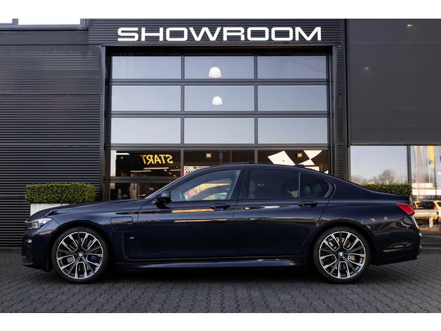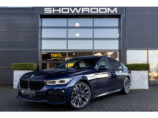 In nieuwstaat verkerende BMW 745e met M-Sport pakket, adaptieve cruise control, luchtvering, H&K Audio met DAB radio, Shadow line zwarte details, te allen tijde bij BMW dealer onderhouden, niet rokersauto. Plug-in hybride; 8 versn., Automaat; 4WD; Bandenmaat: 245/50 R18; 293 kW; 6 cilinders; 2.998cc; Gewicht: 1.970kg; Laadvermogen: 685kg; GVW: 2.655kg; LxBxH: 512x190x147cm; Wielbasis: 307cm; Accu: 11kWh; Accu laden: Type 2, 1-fase, 3.7 kW; 0-100 km/h: 5,2s; Topsnelheid: 250km/u; 5 zitplaatsen; 1,8 l/100km; 23,333333333333 kWh/100km; 50 g/km CO₂; Energielabel A; Euro 6; Dealer onderhouden (onderhoudsboekjes aanwezig); APK: tot jun. 2026; Wegenbelasting: € 387-€ 423p/kwrt