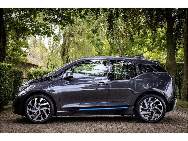 Fraai uitgevoerde BMW I3 met 22 kWh batterij en een warmtepomp. De lakkleur Laurusgrau Metallic met accenten in BMW I Blau en het Neutronic interieur in de kleur Aragazgrau zijn een stijlvolle kleurencombinatie. Tot de verdere uitrusting behoort een navigatiesysteem Business, warmtepomp, 19" Turbine styling velgen, uitgebreide bluetooth telefoonvoorbereiding met audiostreaming, automatische klimaatregeling, elektrisch inklapbare buitenspiegels, cruise control, licht- en regensensor, parkeersensoren achter, metallic lak en multimedia aansluitingen. Het afleverpakket voor deze auto bedraagt € 1.195,- en omvat een volledige technische controle, onderhoudsbeurt, reconditionering en 12 maanden BOVAG garantie. Modelreeks: nov. 2013 - aug. 2016; Modelcode: I01; Achterwielaandrijving; 125 kW; 250 Nm; Gewicht: 1.170kg; Laadvermogen: 450kg; GVW: 1.620kg; LxBxH: 400x178x158cm; Wielbasis: 257cm; Actieradius: 190 km; 0-100 km/h: 7,2s; Topsnelheid: 150km/u; Interieur: Donker grijs, Stof; 4...