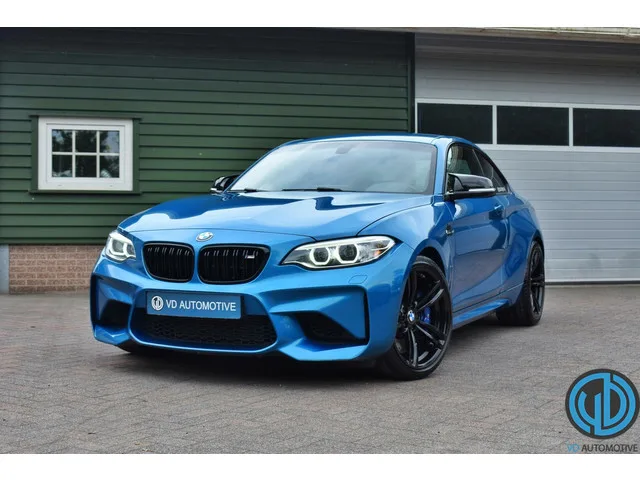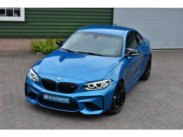 BMW 2-serie Coupé M2 DCT | camera| navi. Kenteken: L-610-RS; Merk: BMW; Model: 2-serie Coupé; APK tot: 18-06-2026; Tellerstand: 79580 KM; Carrosserievorm: Coupé; Aantal deuren: 2; Brandstofsoort: Benzine; Bouwjaar: 2016; Transmissie: Automaat; Kleur: blauw; Bekleding: Leder; Kleur interieur: zwart; Motorinhoud: 2979 cc; Aantal cilinders: 6; Motorcode: N55B30A; Vermogen: 272 kW / 370pk; Ledig gewicht: 1495 kg; Aantal zitplaatsen: 4; Verbruik: 7.9 l/100 km; BTW/Marge: Marge, de BTW is niet aftrekbaar; Lengte: 447 cm; Breedte: 185 cm; Hoogte: 1410 cm; Aantal sleutels: 2; Onderhoudshistorie aanwezig: Ja; Motorrijtuigenbelasting: € 253 - 276 per kwartaal; Emissieklasse: Euro 6. Comfort. Boordcomputer; Cruise control; Regensensor. Exterieur. Bi-xenon koplampen; Buitenspiegels elektrisch verstelbaar; Buitenspiegels verwarmbaar; Centrale vergrendeling met afstandsbediening; Dimlichten automatisch; Keyless entry; Koplampreiniging; LED achterlichten; LED dagrijverlichting; Lichtmetalen velgen...