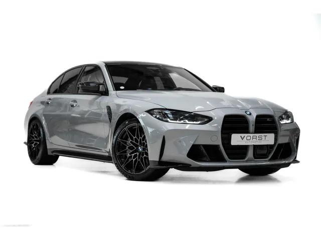 BMW 3-serie M3 Competition Keramisch Carbon HUD Track-Pack. Kenteken: JHZ-59-F; Merk: BMW; Model: 3-serie; Tellerstand: 30633 KM; Carrosserievorm: Sedan; Aantal deuren: 4; Brandstofsoort: Benzine; Bouwjaar: 2022; Transmissie: Automaat; Kleur: grijs; Motorinhoud: 2993 cc; Aantal cilinders: 6; Vermogen: 375 kW / 511pk; Ledig gewicht: 1705 kg; Aantal zitplaatsen: 5; Verbruik: 9.8 l/100 km; BTW/Marge: Marge, de BTW is niet aftrekbaar. Pakket: Comfort Access pakket. Elektrisch bedienbare achterklep met sensorsturing; Keyless entry. Pakket: Driving Assistant. Cruise control adaptief met Stop&Go en stuurhulp; Dodehoekdetectie met correctie; Kruisend verkeer detectie; Rijstrooksensor met correctie; Uitwijk assistent. Pakket: Driving Assistant Professional. Cruise control adaptief met Stop&Go en stuurhulp; Dodehoekdetectie met correctie; Kruisend verkeer detectie; Rijstrooksensor met correctie; Uitwijk assistent. Pakket: Parking Pack. Achteruitrijcamera; Parkeer assistent. Pakket: M RACE...