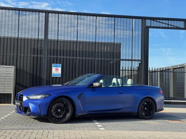 Nieuw binnen! Schitterend uitgevoerde BMW M4 G83 Cabriolet in Individual Frozen Portimao Blue gecombineerd met Merino lederen interieur in wit met zwart. Voorzien van de volgende opties: - Nekverwarming. - Zwarte velgen. - Stoelverwarming. - Stuurverwarming. - 360 Camera. - Carbon exterieur pakket (spiegelkappen, diffusor, bumper inserts voorzijde). - Carbon interieur pakket. - Adaptive Cruise Control met file assistent. - Dodehoek detectie. - Harman Kardon Audio. - Laser koplampen. Betreft een dealeronderhouden exemplaar. Auto staat ingepland voor service bij BMW i.c.m. 4 nieuwe Michelin Super Sport banden. Voor vragen kunt u contact opnemen via 06-54321396 of nick@global-automotive.nl. 4WD; 375 kW; 6 cilinders; 2.993cc; Gewicht: 1.895kg; Laadvermogen: 450kg; GVW: 2.345kg; Wielbasis: 286cm; 0-100 km/h: 3,7s; Topsnelheid: 250km/u; Interieurkleur: Antraciet; 4 zitplaatsen; 10,2 l/100km; Energielabel G; Euro 6; Dealer onderhouden (onderhoudsboekjes aanwezig); APK: tot apr. 2027; 2...