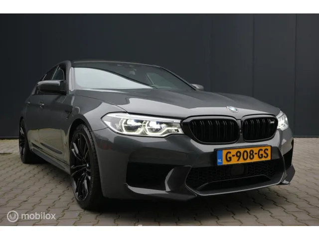 BMW 5-serie M5 600pk BJ-2019/NL-GELEVERD/SOFTCLOSE/ECC/NAP. Kenteken: G-908-GS; Merk: BMW; Model: 5-serie; APK tot: 27-09-2027; Tellerstand: 120769 KM; Carrosserievorm: Sedan; Aantal deuren: 4; Brandstofsoort: Benzine; Bouwjaar: 2019; Transmissie: Automaat; Kleur: grijs; Motorinhoud: 4395 cc; Aantal cilinders: 8; Motorcode: S63B44B; Vermogen: 441 kW / 601pk; Ledig gewicht: 1840 kg; Max. trekgewicht: 2000 kg; Aantal zitplaatsen: 5; Verbruik: 10.8 l/100 km; BTW/Marge: Marge, de BTW is niet aftrekbaar; Lengte: 497 cm; Breedte: 190 cm; Hoogte: 1473 cm; Motorrijtuigenbelasting: € 333 - 365 per kwartaal; Emissieklasse: Euro 6. Comfort. Boordcomputer; Cruise control; Regensensor. Exterieur. Achterspoiler; Adaptief demping systeem; Buitenspiegels elektrisch inklapbaar; Buitenspiegels elektrisch verstel- en verwarmbaar; Dimlichten automatisch; Extra getint glas achter; Keyless entry; Koplampen adaptief; LED koplampen; Metaalkleur; Parkeer assistent; Parkeersensor voor en achter...