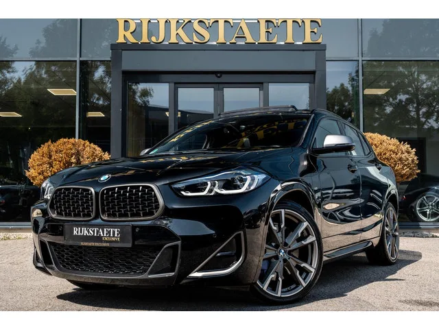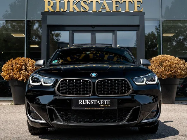 BMW X2 M35i High Executive|PANO|CAMERA|CARPLAY|LEDER|20''. Merk: BMW; Model: X2; APK tot: 14-11-2027; Tellerstand: 13764 KM; Carrosserievorm: SUV; Aantal deuren: 5; Brandstofsoort: Benzine; Bouwjaar: 2023; Transmissie: Automaat; Kleur: zwart Metallic; Bekleding: Leder; Kleur interieur: zwart; Motorinhoud: 1998 cc; Aantal cilinders: 4; Motorcode: B48A20E; Vermogen: 225 kW / 306pk; Ledig gewicht: 1590 kg; Aantal zitplaatsen: 5; Verbruik: 6.8 l/100 km; BTW/Marge: Marge, de BTW is niet aftrekbaar; Lengte: 436 cm; Breedte: 182 cm; Hoogte: 1526 cm; Aantal sleutels: 2; Onderhoudshistorie aanwezig: Dealer onderhouden; Motorrijtuigenbelasting: € 280 - 306 per kwartaal; Emissieklasse: Euro 6. Pakket: Audio Media Pack. Audio installatie; DAB; Draadloze telefoonlader; WiFi. Pakket: Driving Assistant. Grootlichtassistent; Rijstrooksensor. Pakket: Safety pack. Binnen/buitenspiegel aut. dimmend; Grootlichtassistent; Rijstrooksensor. Pakket: Comfort Access pakket. Elektrisch bedienbare achterklep...