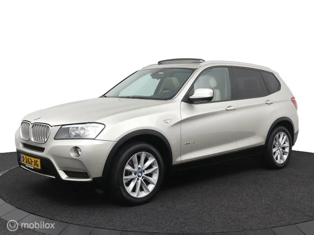 BMW X3 xDrive28i High Executive 245PK Trekhaak Panoramadak.  . Kenteken: X-262-JG; Merk: BMW; Model: X3; APK tot: 18-02-2027; Tellerstand: 169847 KM; Carrosserievorm: SUV; Aantal deuren: 5; Brandstofsoort: Benzine; Bouwjaar: 2013; Transmissie: Automaat; Kleur: beige; Bekleding: Leder; Kleur interieur: beige; Motorinhoud: 1997 cc; Aantal cilinders: 4; Vermogen: 180 kW / 245pk; Ledig gewicht: 1735 kg; Max. massa voertuig: 3750 kg; Max. trekgewicht: 2330 kg; Aantal zitplaatsen: 5; Verbruik: 7.5 l/100 km; BTW/Marge: Marge, de BTW is niet aftrekbaar; Aantal sleutels: 2; Onderhoudshistorie aanwezig: Ja; Motorrijtuigenbelasting: 284,25; Fabrieksgarantie tot: 28-03-2023. Comfort. Cruise control; Regensensor. Exterieur. Achterruitwisser; Bi-xenon koplampen; Buitenspiegel rechts; Buitenspiegel(s) automatisch dimmend; Buitenspiegels elektrisch verstel- en verwarmbaar; Buitenspiegels elektrisch verstelbaar; Buitenspiegels verwarmbaar; Centrale vergrendeling met afstandsbediening; Dimlichten...