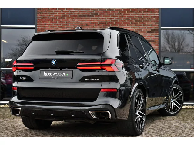 Deze X5 mag zich met recht een luxewagen noemen, dankzij het uitgebreide optiepakket: M-Sportpakket, skylounge (verlicht) panoramadak, adaptieve cruise control, head-up display, harman/kardon audio, 360 graden camera, comfortstoelen, 22 inch velgen, stuurwielverwarming, shadowline (met zwarte grille), etc! (Comfort + Travel + Innovation pack). BTW-auto. Plug-in hybride; 8 versn., Automaat; Modeljaar: 2023; 4WD; 360 kW; 450 Nm; 6 cilinders; 2.998cc; Gewicht: 2.395kg; Max. trekgewicht: 2.700kg; Wielbasis: 298cm; Accu: 29kWh; Accu laden: Type 2, 7.4 kW; 69l tank; 0-100 km/h: 4,8s; Topsnelheid: 250km/u; Interieurkleur: zwart; 5 zitplaatsen; Energielabel A; Dealer onderhouden (onderhoudsboekjes aanwezig); BOVAG Garantie (12 maanden); BOVAG 40-Puntencheck; BOVAG Afleverbeurt; Wegenbelasting: € 495-€ 541p/kwrt; vanaf € 1.119 p/m (informeer naar de mogelijkheden en voorwaarden)