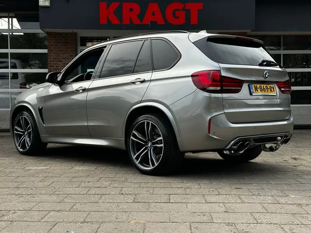 Deze BMW X5 M is helemaal afgeladen vol met opties! Denk hierbij aan softclose, headup display, 21 inch lichtmetaal, schermpjes achter, volledig lederen bekleding incl. stoelverwarming incl. achterbank, schakelflippers, panoramadak, wegklapbare trekhaak, camera, navigatie, Harman/Kardon, etc. etc. Deze auto wordt in consignatie verkocht en is derhalve niet altijd aanwezig, graag vooraf telefonisch contact opnemen voor een afspraak. Kijk op www.kragtautos.nl voor de complete fotoreportage van 50 foto's. 4WD; 424 kW; 8 cilinders; 4.395cc; Gewicht: 2.250kg; Laadvermogen: 720kg; GVW: 2.970kg; Max. trekgewicht: 2.970kg; Wielbasis: 293cm; 0-100 km/h: 4,2s; Topsnelheid: 250km/u; Interieurkleur: zwart; 5 zitplaatsen; 11,1 l/100km; 14,7 l/100km; 9 l/100km; 258 g/km CO₂; Energielabel G; Euro 6; Dealer onderhouden (onderhoudsboekjes aanwezig); 2 sleutels (2 handzenders); Wegenbelasting: € 441-€ 482p/kwrt; vanaf € 1.164 p/m (informeer naar de mogelijkheden en voorwaarden); Optioneel...