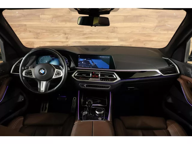 BMW X5 xDrive45e M-Sport|Aero|360|HUD|Alcantara|Pano|Comfort|. BMW X5 xDrive45e M-Sport|Aero|360|HUD|Alcantara|Pano|Comfort|. Merk: BMW; Model: X5; Tellerstand: 131963 KM; Carrosserievorm: SUV; Aantal deuren: 5; Brandstofsoort: Hybride (Elektrisch/Benzine); Bouwjaar: 2020; Transmissie: Automaat; Kleur: zwart; Kleurnaam: Carbonschwarz metallic; Bekleding: Leder; Kleur interieur: bruin; Interieurnaam: Coffee; Motorinhoud: 2998 cc; Aantal cilinders: 6; Vermogen: 289 kW / 394pk; Ledig gewicht: 2410 kg; Aantal zitplaatsen: 5; Verbruik: 1.2 l/100 km; BTW/Marge: BTW aftrekbaar, de prijs is inclusief BTW; Aantal sleutels: 2; Onderhoudshistorie aanwezig: Dealer onderhouden. Pakket: Audio Media Pack. Audio installatie; DAB; Draadloze telefoonlader; WiFi. Pakket: CoPilot Pack. Cruise control adaptief met Stop&Go en stuurhulp; Elektrisch bedienbare achterklep; Elektrisch bedienbare achterklep met sensorsturing; Keyless entry; Kruisend verkeer detectie; Rijstrooksensor met correctie; Rondomzicht...