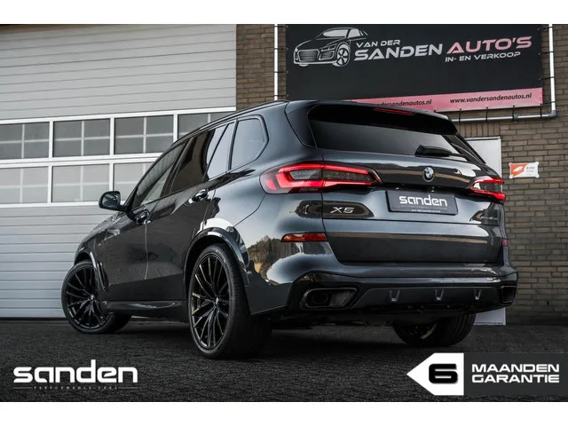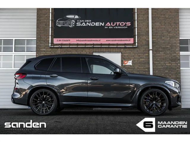 BMW X5 xDrive45e High Executive M-Sport|SkyLoungePano|360ºview|22"|Luchtvering|Merinoleder|LaserLight|SoftClose|HUD|Massage|Memory. BMW X5 xDrive45e M-Sport|FULL|SkyLoungePano|360º|Luchtvering. Kenteken: JSV-92-X; Merk: BMW; Model: X5; Tellerstand: 69900 KM; Carrosserievorm: SUV; Aantal deuren: 5; Brandstofsoort: Hybride (Elektrisch/Benzine); Bouwjaar: 2021; Transmissie: Automaat; Kleur: grijs Metallic; Kleurnaam: Arktik grau metallic; Bekleding: Leder; Kleur interieur: zwart; Interieurnaam: Merino leder; Motorinhoud: 2998 cc; Aantal cilinders: 6; Vermogen: 289 kW / 394pk; Ledig gewicht: 2410 kg; Aantal zitplaatsen: 5; Verbruik: 1.2 l/100 km; BTW/Marge: Marge, de BTW is niet aftrekbaar; Aantal sleutels: 2; Onderhoudshistorie aanwezig: Dealer onderhouden; Velgmaat: 22 inch. Pakket: CoPilot Pack. Cruise control adaptief met Stop&Go en stuurhulp; Elektrisch bedienbare achterklep; Elektrisch bedienbare achterklep met sensorsturing; Keyless entry; Kruisend verkeer detectie...