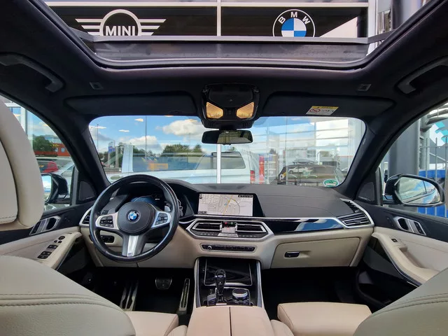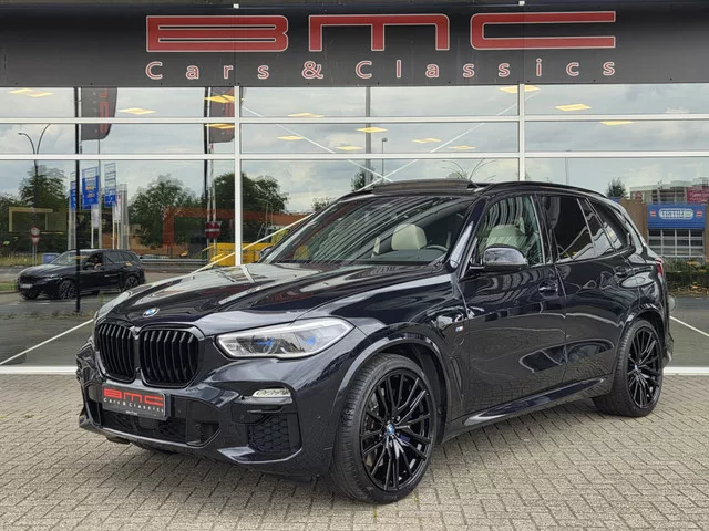 Zeer complete BMW X5 45e High excecutive uitgevoerd in Carbon Schwarz Metallic met een wit lederen interieur. Voorzien van vele mooie opties: - Panorama. - 22 Inch. - Adaptive cruise control. - Head up display. - Harman Kardon sound. - 4 wiel sturing. - 360 Rondomzicht camera. - Comfortstoelen. - Stoelverwarming. - Draadloze telefoonlader. - Keyless entry. - Trekhaak elektrisch uitklapbaar. - BMW Laser. - Parking assistant plus. - DAB. - BMW Drive recorder. - Privacyglas met zonprotectie. - Display sleutel. - Driving assistant. - Shadowline. 8 versn., Automaat; Modelreeks: aug. 2019 - mrt. 2023; 4WD; 0 kW; 450 Nm; 6 cilinders; 2.998cc; Gewicht: 2.410kg; Wielbasis: 298cm; 69l tank; 0-100 km/h: 5,6s; Topsnelheid: 205km/u; 5 zitplaatsen; 1,2 l/100km; Energielabel A; Geen wegenbelasting; Beschikbare afleverpakketten: BMC Cars basis pakket (€ 295); BMC Cars Premium pakket (€ 595)