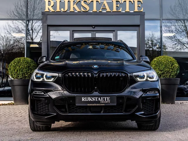 BMW X5 xDrive 45e High Executive|PANO|ACC|360°|H&K|HEAD-UP. Merk: BMW; Model: X5; APK tot: 31-07-2027; Tellerstand: 130689 KM; Carrosserievorm: SUV; Aantal deuren: 5; Brandstofsoort: Hybride (Elektrisch/Benzine); Bouwjaar: 2020; Transmissie: Automaat; Kleur: zwart Metallic; Bekleding: Leder; Kleur interieur: zwart; Motorinhoud: 2998 cc; Aantal cilinders: 6; Motorcode: B58B30C; Vermogen: 289 kW / 394pk; Ledig gewicht: 2410 kg; Max. trekgewicht: 2700 kg; Aantal zitplaatsen: 5; Verbruik: 1.2 l/100 km; BTW/Marge: Marge, de BTW is niet aftrekbaar; Lengte: 492 cm; Breedte: 200 cm; Hoogte: 1745 cm; Aantal sleutels: 2; Onderhoudshistorie aanwezig: Dealer onderhouden; Motorrijtuigenbelasting: € 354 - 388 per kwartaal; Emissieklasse: Euro 6. Pakket: Driving Assistant Plus. Cruise control adaptief met Stop&Go en stuurhulp; Dodehoekdetectie met correctie; Kruisend verkeer detectie; Rijstrooksensor met correctie; Uitwijk assistent. Pakket: M Sportpakket. Hemelbekleding donker; Kunstlederen...