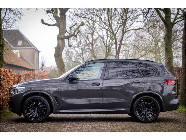 Fraai uitgevoerde BMW X5 45e M Sport met een zeer uitgebreide optielijst. Deze auto is volledig dealer onderhouden. De lakkleur Individual Dravit Grau Metallic en het Schwarz leder interieur zijn een stijlvolle kleurencombinatie. Het interieur is voorzien van carbon sierlijsten. Het shadowline pakket versterkt de dynamische uitstraling van deze X5. Tot de uitrusting behoort het Sky Lounge glazen panoramadak met geintegreerde verlichting, Entertainment schermen voor achterpassagiers, Laser Led koplampen met grootlichtassistent, 22" Dubbelspaak 742M Jet Black velg, head up display, comfort access (keyless entry), afneembare trekhaak, BMW Gesture Control, 360 graden camera met remote 3D View, HiFi premium speakersysteem, driving assistant professional met adaptieve cruise control en file assistent, actieve spoorassistent, achteruitrijcamera, comfortstoelen met memory functie, BMW display key, DAB-tuner, navigatiesysteem Professional, uitgebreide bluetooth telefoonvoorbereiding met...