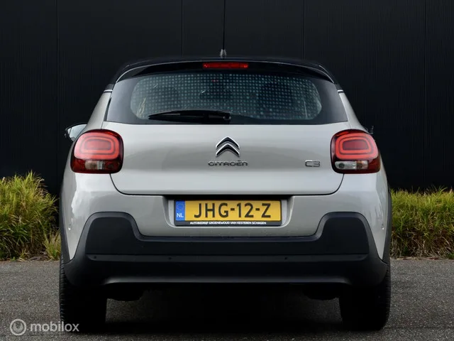 Citroen C3 110pk Shine I Automaat I 6000km!!!! I. Kenteken: JHG-12-Z; Merk: Citroen; Model: C3; APK tot: 31-07-2026; Tellerstand: 6717 KM; Carrosserievorm: Hatchback; Aantal deuren: 5; Brandstofsoort: Benzine; Bouwjaar: 2017; Transmissie: Automaat 6; Kleur: beige Metallic; Bekleding: Stof; Motorinhoud: 1199 cc; Aantal cilinders: 3; Motorcode: HN01; Vermogen: 81 kW / 110pk; Ledig gewicht: 1065 kg; Max. trekgewicht: 450 kg; Aantal zitplaatsen: 5; Verbruik: 4.9 l/100 km; BTW/Marge: Marge, de BTW is niet aftrekbaar; Lengte: 400 cm; Breedte: 175 cm; Aantal sleutels: 2; Onderhoudshistorie aanwezig: Ja; Motorrijtuigenbelasting: € 145 - 158 per kwartaal; Emissieklasse: Euro 6. Pakket: Connect Nav DAB. DAB; Navigatiesysteem full map; Spraakbediening. Comfort. Boordcomputer; Cruise control; Regensensor. Exterieur. Achterruitwisser; Andere dakkleur; Buitenspiegel rechts; Buitenspiegels elektrisch inklapbaar; Buitenspiegels elektrisch verstel- en verwarmbaar; Buitenspiegels elektrisch...