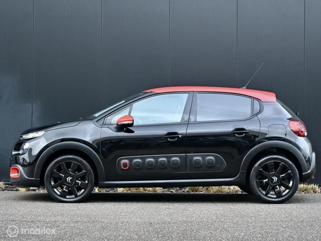Citroen C3 110pk Shine I Navi I Camera I Clima I. Kenteken: JXJ-16-H; Merk: Citroen; Model: C3; APK tot: 16-05-2026; Tellerstand: 137034 KM; Carrosserievorm: Hatchback; Aantal deuren: 5; Brandstofsoort: Benzine; Bouwjaar: 2017; Transmissie: Handgeschakeld; Kleur: zwart Metallic; Bekleding: Stof; Kleur interieur: zwart; Motorinhoud: 1199 cc; Aantal cilinders: 3; Motorcode: HN01; Vermogen: 81 kW / 110pk; Ledig gewicht: 1025 kg; Max. trekgewicht: 600 kg; Aantal zitplaatsen: 5; Verbruik: 4.6 l/100 km; BTW/Marge: Marge, de BTW is niet aftrekbaar; Lengte: 400 cm; Breedte: 175 cm; Aantal sleutels: 2; Onderhoudshistorie aanwezig: Dealer onderhouden; Motorrijtuigenbelasting: € 119 - 129 per kwartaal; Emissieklasse: Euro 6. Comfort. Boordcomputer; Cruise control; Regensensor. Exterieur. Achterruitwisser; Andere dakkleur; Buitenspiegel rechts; Buitenspiegels elektrisch inklapbaar; Buitenspiegels elektrisch verstel- en verwarmbaar; Buitenspiegels elektrisch verstelbaar; Buitenspiegels...