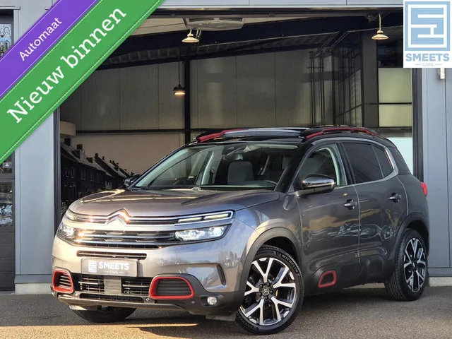 Citroen C5 Aircross 1.2T Shine Automaat 1e Eig! |Nav|Cam|Pano. Kenteken: JXL-48-K; Merk: Citroen; Model: C5 Aircross; APK tot: 10-05-2027; Tellerstand: 116411 KM; Carrosserievorm: SUV; Aantal deuren: 5; Brandstofsoort: Benzine; Bouwjaar: 2021; Transmissie: Automaat; Kleur: grijs Metallic; Bekleding: Leder/Stof; Kleur interieur: antraciet; Motorinhoud: 1199 cc; Aantal cilinders: 3; Vermogen: 96 kW / 131pk; Ledig gewicht: 1405 kg; Aantal zitplaatsen: 5; Verbruik: 6.5 l/100 km; BTW/Marge: Marge, de BTW is niet aftrekbaar; Aantal sleutels: 2; Onderhoudshistorie aanwezig: Ja; Motorrijtuigenbelasting: € 226 - 247 per kwartaal. Comfort. Cruise control; Regensensor. Exterieur. Achterruitwisser; Buitenspiegels elektrisch inklapbaar; Buitenspiegels elektrisch verstelbaar; Buitenspiegels in carrosseriekleur; Buitenspiegels met verlichting; Buitenspiegels verwarmbaar; Centrale vergrendeling met afstandsbediening; Chroom delen exterieur; Dakrails; Dimlichten automatisch; Extra getint glas achter...