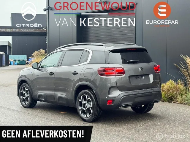 Citroen C5 Aircross 1.6 Plug-in Hybrid 225pk Max. Merk: Citroen; Model: C5 Aircross; Tellerstand: 10 KM; Carrosserievorm: SUV; Aantal deuren: 5; Brandstofsoort: Hybride (Elektrisch/Benzine); Bouwjaar: 2025; Transmissie: Automaat; Kleur: grijs Metallic; Bekleding: Leder/Stof; Kleur interieur: grijs; Motorinhoud: 1598 cc; Aantal cilinders: 4; Vermogen: 165 kW / 225pk; Ledig gewicht: 1745 kg; Aantal zitplaatsen: 5; Verbruik: 1.4 l/100 km; BTW/Marge: BTW aftrekbaar, de prijs is inclusief BTW; Aantal sleutels: 2; Onderhoudshistorie aanwezig: Dealer onderhouden. Comfort. Regensensor. Exterieur. Adaptief demping systeem; Andere dakkleur; Buitenspiegels elektrisch inklapbaar; Buitenspiegels elektrisch verstelbaar; Buitenspiegels verwarmbaar; Chroom delen exterieur; Dakrails; Dimlichten automatisch; Extra getint glas achter; Keyless entry; LED achterlichten; LED dagrijverlichting; LED koplampen; Lichtmetalen velgen 18"; Lichtmetalen velgen 5-spaaks 18"; Mistlampen voor; Mistlampen voor...