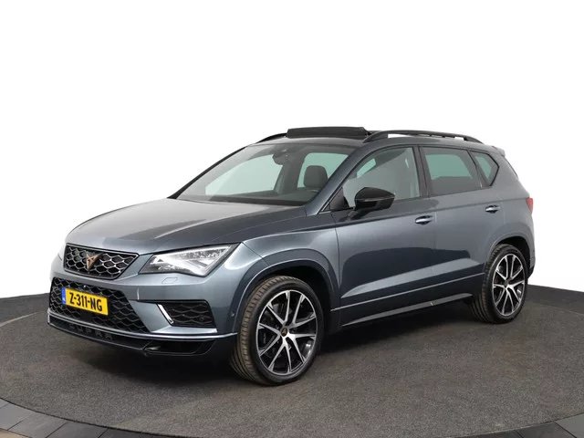 Keurige Cupra Ateca 2.0 TSI 4DRIVE. - Automaat. - Elektrisch Panorama dak. - Stoelverwarming. - Adaptive Cruisecontrol. - Trekhaak. - Alacantra/Leder bekleding. - Door de vorige eigenaar bij de Dealer in Duitsland aangeschaft! Meer informatie: Vierwielaandrijving; Vermogen: 221 kW (301 PK); Aantal cilinders: 4; Motorinhoud: 1.984 cc; Ledig gewicht: 1.515 kg; Laadvermogen: 635 kg; GVW: 2.150 kg; Max. trekgewicht: 2.100 kg (ongeremd 750 kg); Wielbasis: 263 cm; Acceleratie (0-100): 5,2 s; Topsnelheid: 247 km/u; 5 zitplaatsen; Gemiddeld brandstofverbruik: 8,5 l/100km (1 op 11,8); CO₂-uitstoot: 168 g/km; Energielabel: F; Emissieklasse: Euro 6; Onderhoudsboekjes aanwezig; APK gekeurd tot mei 2026; 2 handzenders; Motorrijtuigenbelasting: € 253 - € 276 per kwartaal; Beschikbare afleverpakketten: 3. Pakket B (€ 795); 4. Pakket C (€ 995); 6. Pakket D (€ 1.995); Referentienummer: Z-311-NG