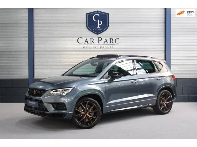 CUPRA Ateca 2.0 TSI 4DRIVE 300+PK LED/VIRTUAL/SFEER/BEATS/PANO/LEER+ALCANTARA+S.VERWARMING/19" LMV/CAM/ACC/ECC/12 MDN GARANTIE! Incl. 12 maanden basis garantie! Dealeronderhouden! Meer informatie: Transmissie: 7 versnellingen, Automaat; Vermogen: 221 kW (301 PK); Aantal cilinders: 4; Motorinhoud: 1.984 cc; GVW: 2.160 kg; Max. trekgewicht: 2.100 kg (ongeremd 750 kg); Wielbasis: 263 cm; Acceleratie (0-100): 4,9 s; Topsnelheid: 250 km/u; 5 zitplaatsen; Gemiddeld brandstofverbruik: 8,5 l/100km (1 op 11,8); Dealer onderhouden (onderhoudsboekjes aanwezig); Nieuwe APK bij aflevering; 2 sleutels; Beschikbare afleverpakketten: Garantie basis (zonder meerprijs); Afleverpakket (indien gewenst) (€ 795); Referentienummer: HKF-82-N