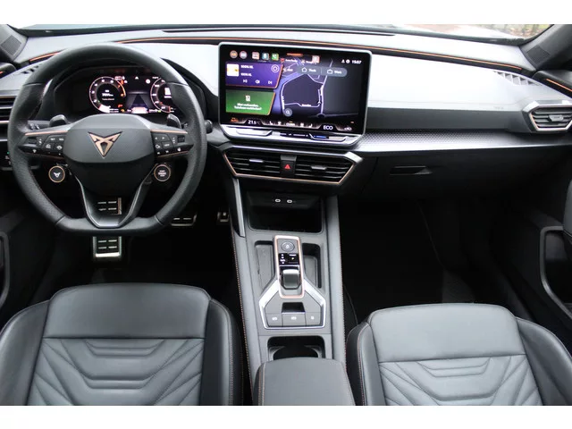 Het is een auto die er nog jaren tegenaan kan, deze CUPRA Formentor die 7014 kilometer op de teller heeft staan. Een krachtige motor zorgt voor de aandrijving van deze SUV. Zegt u nou zelf: niks is in de auto toch aantrekkelijker dan de geur van een lederen interieur? Tenzij u meer geniet van gemak. En daarvoor is de elektrisch bedienbare achterklep. Dankzij de elektrische stoelbediening is het gemakkelijk om de optimale zitpositie te vinden. Het glazen panoramadak geeft ook doordeweeks een vakantiegevoel. Wat een licht en zicht! De uitmonstering van deze auto wordt gecompleteerd door onder meer Full LED koplampen, adaptief dempingsysteem, zwarte hemelbekleding, donker getint glas achter, in delen neerklapbare achterbank en LED-achterlichten. Ervaar de wonderen van de digitale mobiliteitswereld waarbij alles wat u wenst op het digitale dashboard verschijnt. De kracht van de 360 graden camera op deze auto resulteert in optimale zichtbaarheid en veiligheid. Adaptive cruise control is...