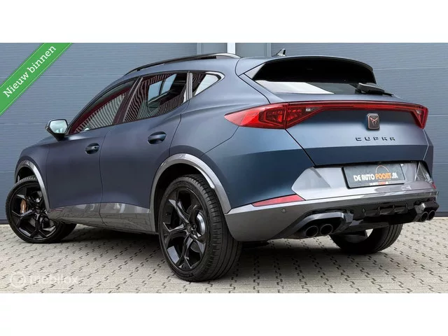 CUPRA Formentor 2.0 TSI 4DRIVE 310PK Pano.dak/Brembo/Leder/LED. Merk: CUPRA; Model: Formentor; Tellerstand: 54635 KM; Carrosserievorm: SUV; Aantal deuren: 5; Brandstofsoort: Benzine; Bouwjaar: 2021; Transmissie: Automaat; Kleur: blauw; Bekleding: Leder; Motorinhoud: 1984 cc; Aantal cilinders: 4; Vermogen: 228 kW / 311pk; Ledig gewicht: 1544 kg; Max. trekgewicht: 1800 kg; Aantal zitplaatsen: 5; Verbruik: 8.2 l/100 km; BTW/Marge: Marge, de BTW is niet aftrekbaar; Onderhoudshistorie aanwezig: Dealer onderhouden. Pakket: Launch pakket. Elektrisch bedienbare achterklep met sensorsturing; Elektrisch glazen panorama-dak; Elektrisch verstelb. bestuurdersstoel met geheugen; Lederen bekleding; Voorstoelen verwarmd. Pakket: Leder pakket. Elektrisch verstelb. bestuurdersstoel met geheugen; Lederen bekleding; Voorstoelen verwarmd. Comfort. Regensensor. Exterieur. Achterspoiler; Adaptief demping systeem; Buitenspiegels elektrisch inklapbaar; Buitenspiegels elektrisch verstel- en verwarmbaar...