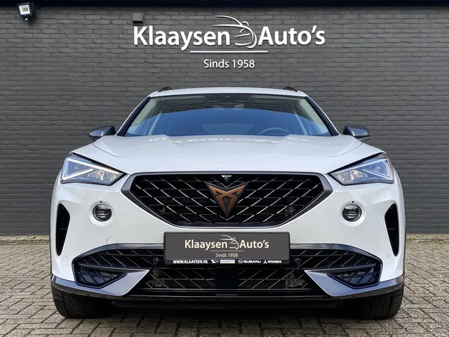 Zeer sportieve en complete CUPRA Formentor 1.4 e-Hybrid PHEV 204 pk Business benzine automaat uitvoering! Origineel en dealer onderhouden voertuig, slechts 38.112 kilometer met complete documentatie. Luxe business uitvoering, voorzien van o.a. full map navigatie, 360 graden camera, parkeersensoren voor/achter, elektr. wegklapbare trekhaak, keyless start, 2x laadkabel, 19 inch lichtmetalen velgen, stoel-/stuurverwarming, kuipstoelen, elektrisch verstelbare b. sportstoel met geheugen enz. Plug-in hybride; 6 versn., Automaat; Modeljaar: 2021; Voorwielaandrijving; 150 kW; 250 Nm; 4 cilinders; 1.395cc; Gewicht: 1.580kg; Max. trekgewicht: 1.500kg; Wielbasis: 268cm; Aanwezige accu: gekocht; Accu laden: Type 2, 1-fase; Accu snelladen: nee; 40l tank; 0-100 km/h: 7,8s; Topsnelheid: 205km/u; Interieur: zwart, Leder/alcantara; 5 zitplaatsen; 1,2 l/100km; 33 g/km CO₂; Energielabel A; Euro 6; Onderhouden volgens voorschriften; APK bij aflevering; Algemene staat: goed; Schadevrij; 2 sleutels (2...