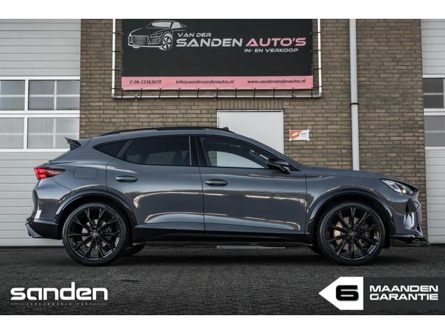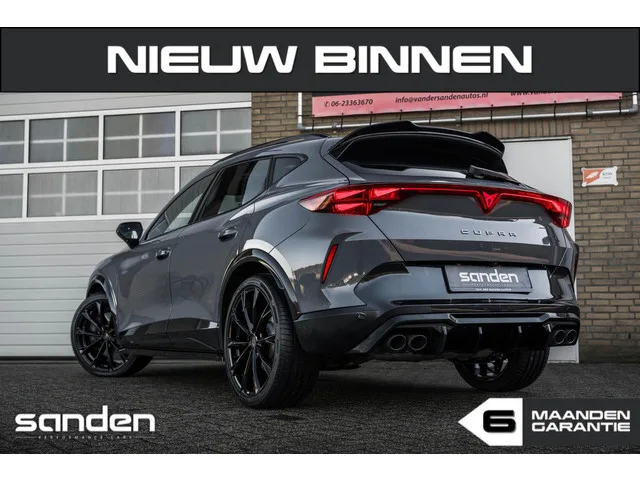 CUPRA Formentor 2.0 TSI VZ 4DRIVE|333pk|Panoramadak|Sennheiser|Memory|MaxtonDesign|MatrixLED|Sportstoelen|Leder|20 inch|Stoelverw. CUPRA Formentor 2.0 TSI VZ 4DRIVE|333pk|Pano|Sennheiser|Mem. Kenteken: JSH-10-T; Merk: CUPRA; Model: Formentor; APK tot: 20-11-2028; Tellerstand: 6600 KM; Carrosserievorm: SUV; Aantal deuren: 5; Brandstofsoort: Benzine; Accucapaciteit: 26 kWh; Bouwjaar: 2024; Transmissie: Automaat; Kleur: grijs; Kleurnaam: Graphene Grey; Bekleding: Leder; Kleur interieur: zwart; Interieurnaam: Vol lederen sportstoelen; Motorinhoud: 1984 cc; Aantal cilinders: 4; Vermogen: 245 kW / 334pk; Ledig gewicht: 1541 kg; Max. trekgewicht: 1700 kg; Aantal zitplaatsen: 5; Verbruik: 1.6 l/100 km; BTW/Marge: Marge, de BTW is niet aftrekbaar; Lengte: 445 cm; Breedte: 184 cm; Aantal sleutels: 2; Onderhoudshistorie aanwezig: Dealer onderhouden; Fabrieksgarantie tot: 20-11-2026. Pakket: Pack Eclipse. Matrix LED koplampen. Pakket: Stoelen pakket. Elektrisch verstelbare stoel(en) met...