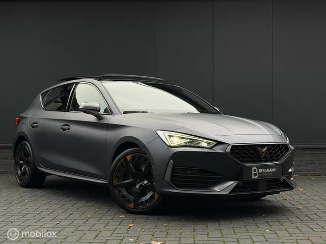 CUPRA Leon 1.4 e-Hybrid VZ Performance|Mat|Pano|cupraknop|VOL. Zeer vol uitgevoerde Cupra Leon 1.4 e-Hybrid VZ Performance in de prachtige matte kleur Magnetic Tech Matt. Lage tellerstand, volledig dealer onderhouden en o.a. voorzien van : Cupra knop op het stuur, Adaptive cruise Control, stuurverwarming, stoelverwarming, panoramadak, stoelverstelling elektrisch met Memory, 19” Aero velgen, Virtual Cockpit, CarPlay, Camera, LED dynamisch, keyless, sportonderstel, rijmodus, etc. -2e eigenaar. -Volledig dealer onderhouden. -2 Handzenders aanwezig. -Volledige wagendocumentatie. -Winterset (lichtmetaal). -APK t/m 28-2-2027.  . Kenteken: JJG-48-J; Merk: CUPRA; Model: Leon; APK tot: 28-02-2027; Tellerstand: 53425 KM; Carrosserievorm: Hatchback; Aantal deuren: 5; Brandstofsoort: Hybride (Elektrisch/Benzine); Bouwjaar: 2021; Transmissie: Automaat; Kleur: grijs; Kleurnaam: Magnetic Tech Matt; Bekleding: Leder/Stof; Kleur interieur: zwart; Motorinhoud: 1395 cc; Aantal cilinders: 4; Vermogen:...