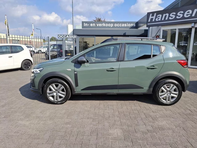 Dacia Sandero Stepway 1.0 TCe 90 Extreme. Merk: Dacia; Model: Sandero Stepway; APK tot: 01-02-2027; Tellerstand: 41317 KM; Carrosserievorm: Hatchback; Aantal deuren: 5; Brandstofsoort: Benzine; Bouwjaar: 2023; Transmissie: Handgeschakeld; Kleur: groen; Motorinhoud: 999 cc; Aantal cilinders: 3; Vermogen: 67 kW / 91pk; Ledig gewicht: 1097 kg; Aantal zitplaatsen: 5; Verbruik: 6.2 l/100 km; BTW/Marge: Marge, de BTW is niet aftrekbaar; Motorrijtuigenbelasting: € 48,- per maand. Comfort. Boordcomputer; Cruise control; Regensensor. Exterieur. Buitenspiegels elektrisch verstel- en verwarmbaar; Bumpers in carrosseriekleur; Centrale vergrendeling met afstandsbediening; Dakrails; Dimlichten automatisch; LED koplampen; Mistlampen voor; Parkeersensor achter. Infotainment. Audio installatie; DAB; Multimedia-voorbereiding; Radio; Stuur multifunctioneel. Interieur. Achterbank in delen neerklapbaar; Airco; Armsteun voor; Bestuurdersstoel in hoogte verstelbaar; Elektrische ramen achter; Elektrische...