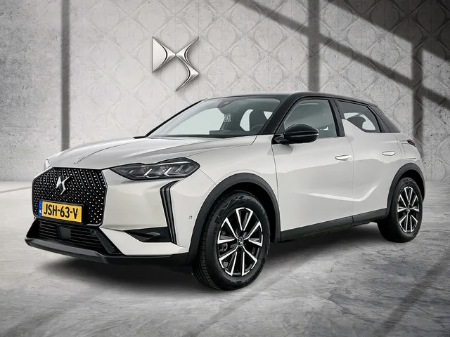 Nieuwe DS 3 E-Tense Performance Line zonder kilomters met registratie kenteken 30-12-2025. 100% elektrisch voorzien van de volgende extra opties: Chrystal Pearl parelmoer lak / Peruzzi Gris Sillicium / Pack Style+Pack Confort(J6FL) / Pack Techno(J6HJ) / Warmtepomp (J6NV). Geniet van de zekerheid van DS SERENITY garantie tot maximaal 8 jaar of 160.000 km. 1 versn., Automaat; Modeljaar: 2022; 4WD; 115 kW; 260 Nm; Gewicht: 1.525kg; Laadvermogen: 483kg; GVW: 2.008kg; LxBxH: 412x179x154cm; Wielbasis: 256cm; Actieradius: 399 km; 0-100 km/h: 9,0s; Topsnelheid: 150km/u; 5 zitplaatsen; 0 g/km CO₂; Energielabel A; 100% Onderhouden; Eerste eigenaar; APK: tot dec. 2029; SPOTiCAR Premium (24 maanden), Autotrust garantie (12 maanden), BOVAG Garantie (12 maanden); BOVAG 40-Puntencheck; BOVAG Afleverbeurt; Wegenbelasting: € 177-€ 193p/kwrt; JSH-63-V