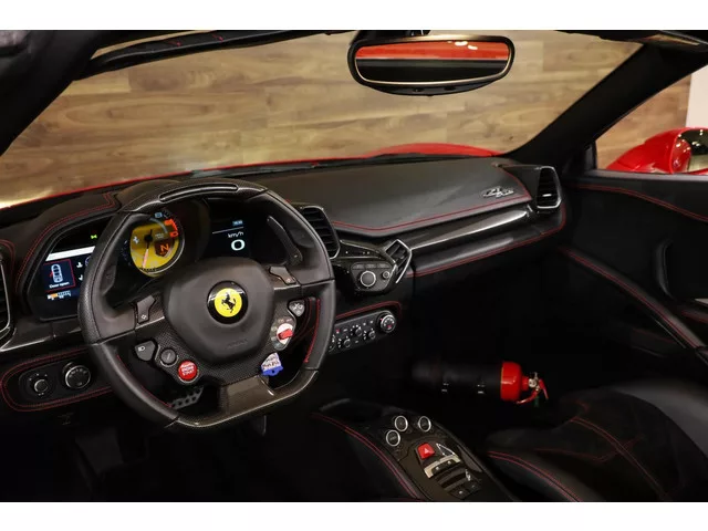 Ferrari 458 4.5 V8 Spider HELE|NL|Full Carbon|Full PPF|Camera|. Ferrari 458 4.5 V8 Spider HELE|NL|Full Carbon|Full PPF|Camera|. Merk: Ferrari; Model: 458; APK tot: 13-05-2026; Tellerstand: 18478 KM; Carrosserievorm: Cabrio; Aantal deuren: 2; Brandstofsoort: Benzine; Bouwjaar: 2013; Transmissie: Automaat; Kleur: rood; Kleurnaam: Rosso Corsa FER 322; Bekleding: Leder/Alcantara; Kleur interieur: zwart; Interieurnaam: Carbon Racing seats Nero; Motorinhoud: 4499 cc; Aantal cilinders: 8; Motorcode: F136 FB; Vermogen: 416 kW / 567pk; Ledig gewicht: 1540 kg; Aantal zitplaatsen: 2; Verbruik: 11.8 l/100 km; BTW/Marge: Marge, de BTW is niet aftrekbaar; Lengte: 453 cm; Hoogte: 1206 cm; Aantal sleutels: 2; Onderhoudshistorie aanwezig: Dealer onderhouden; Motorrijtuigenbelasting: € 253 - 276 per kwartaal; Emissieklasse: Euro 5. Comfort. Regensensor. Exterieur. 20 inch licht metalen velgen ; Carbon Package ; Carbon seats; Centrale vergrendeling; Full Front steenslag folie ; Keramische remschijven ...